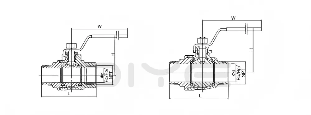 Топчестиот вентил од не'рѓосувачки челик од 2 компјутери со машко-женски навои, масовно произведен од Кина DIYE VALVE, главно се користи за контрола на вклучување-исклучување на медиуми, вклучувајќи вода, пареа, нафтени производи, компримиран воздух, природен гас, слаба киселина, слаби алкали и чисти течности.