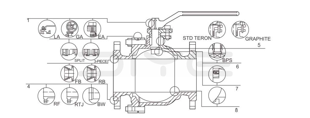 3. Забелешка: Поради ограничувањето на меките материјали за запечатување, конвенционалните API лебдечки топчести вентили имаат ограничен отпор на висока температура. За работни услови на висока температура, може да се изберат PPL материјали за заптивање или специјални метални конструкции за заптивање.