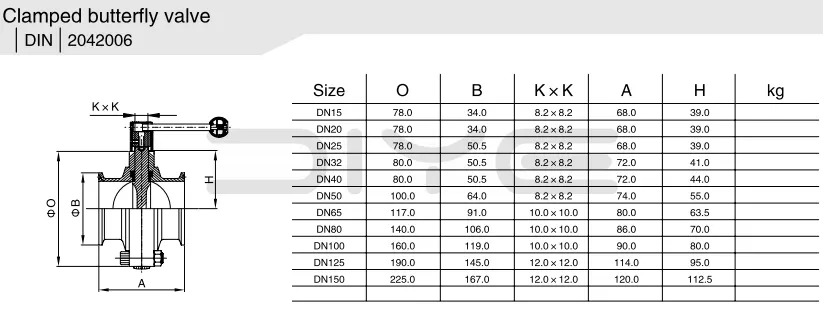 DIYE VALVE санитарната стегалка со пеперутка вентилот извезена од Кина е специјално дизајниран за хигиенски работни услови со строги барања за чистота на цевководот, без мртви агли и лесно чистење. Широко се применува во прехранбената, фармацевтската, пијалаци и биофармацевтската индустрија, главно се користи за контрола на вклучување-исклучување на медиумите во цевководи.