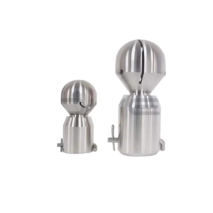 Санитарната топка за прскање има ротирачка структура за прскање за 360°, автоматски управувана од вода под висок притисок, без потреба од надворешно напојување. Внимателно дизајнираниот агол на прскање сеопфатно ги покрива внатрешните ѕидови на резервоарите за складирање, ферментаторите, реакторите и друга опрема, со што се постигнува темелно чистење без слепи точки. Ова ефикасно го решава проблемот со остатоците од материјалот предизвикани од нецелосно чистење, значително ја подобрува ефикасноста на чистењето во споредба со традиционалното рачно чистење или фиксната опрема за прскање.